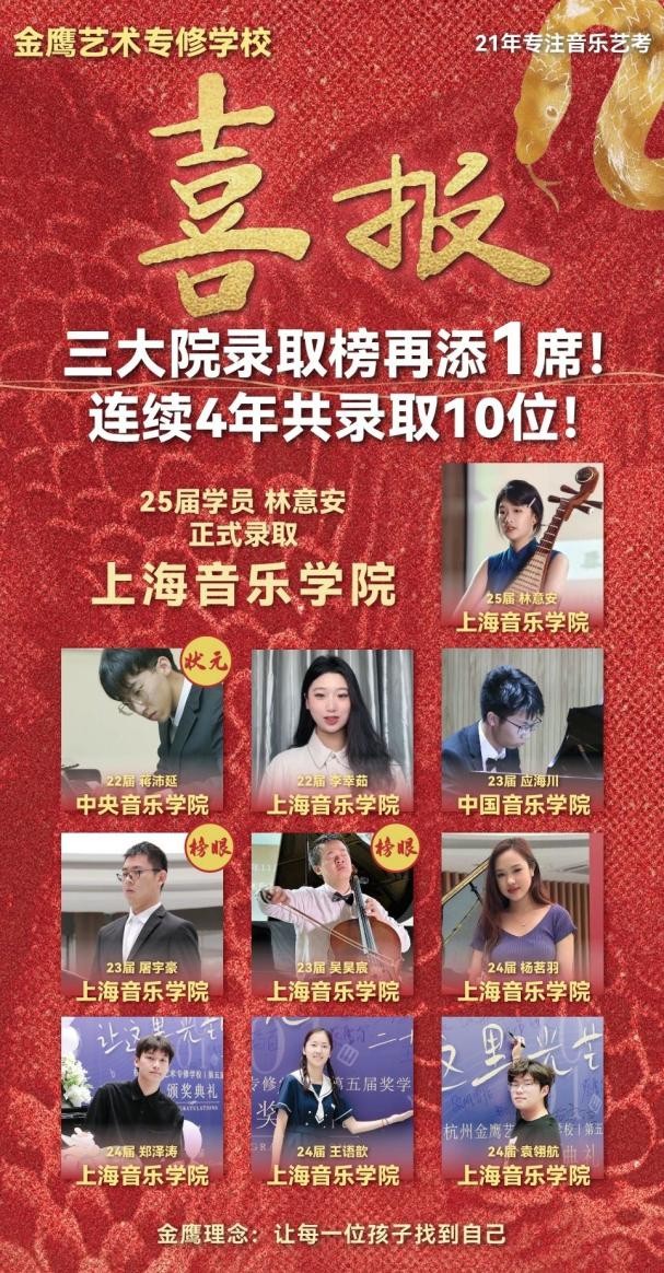 音乐艺考生择校建议 选择艺考培训机构,不仅要关注表面的宣传,更要深入了解其办学理念和培养模式。建议考生和家长通过实地考察、进行专业测试、与在校师生交流等方式,全面了解机构的真实情况。 金鹰艺术专修学校以其独特的办学特色和显著的教学成效,为浙江音乐艺考培训树立了新的标杆。在这里,艺术教育不仅是技能的传授,更是艺术素养的全面提升,为学子们开启通往艺术殿堂的大门。