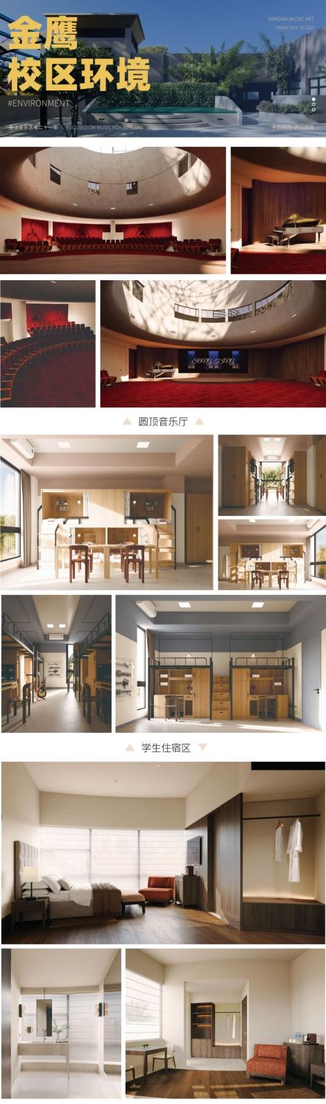 完善的教学配套设施及其生活设施也是学校的一大亮点。金鹰艺术专修学校独栋教学楼6000多平方米,集学习+生活为一体,采取全封闭式管理模式。琴房、教室、音乐厅、餐厅、健身房……一应俱全。