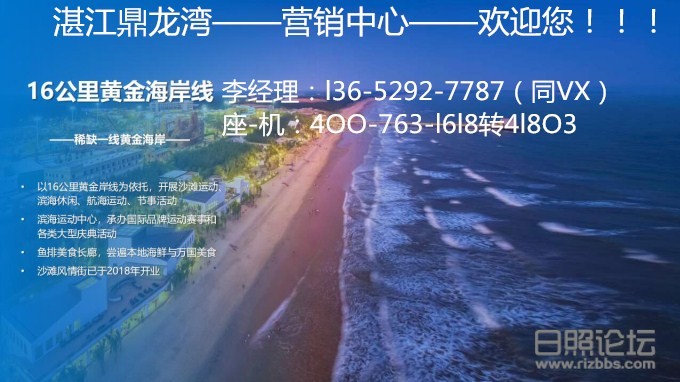广东湛江鼎龙湾——营销中心——欢迎您!!! 来电预约可享内部优 惠!详情咨 询 售 楼 处! 李经理:l36-5292-7787(同VX) 座-机:4OO-763-l6l8转4l8O3 楼盘名称:鼎龙湾 产权年限: 70年 楼盘均价: 8500元㎡起 所属区域:广东省 湛江市 吴川市 开盘时间:2018年02月10日 入住时间:2019年12月31日 开 发 商:吴川鼎龙湾房地产开发有限公司 物业类型:洋房、别墅 建筑类型:独栋,联排,双拼,商住公寓 规划户数:3168户 物 业 费:3.50元/㎡月: 容 积 率:1.33:绿 化 率:35% : 鼎龙湾主推43-106㎡一至三房单位,户户瞰海,品牌装修,带家私家电,拎包入住。 湛江·鼎龙湾,地处粤西交通枢纽,北部湾城市——湛江吴川市。 德萨斯水上乐园、18洞标准高尔夫球场、主题公园、酒店等二十种度假配套。 周边配套 学校:惠民幼 儿 园、中华幼 儿 园、碌西小学、河村小学 购物:港联生活超市覃柏店牛仔风情商业街 综合商场:吴川同德城沃尔玛港丰超市 医 院:吴川人 民 医 院 银 行:中国邮政储蓄银行覃巴支行 小区内部配套:商业街、健身设施、游泳池 广东湛江鼎龙湾——营销中心——欢迎您!!! 备注、因售楼处看房客户较多、请提前一天预约!!!