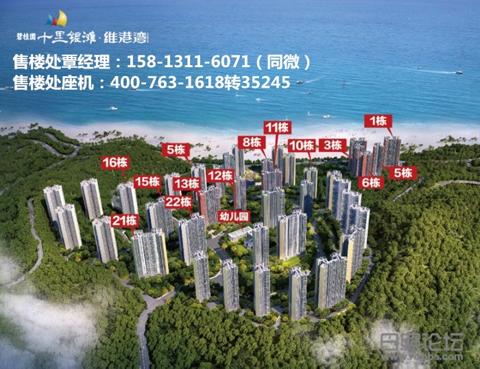 碧桂园十里银滩·维港湾 花名:半山海景大城 售楼处覃经理:l58-1311-6071(同微) 售楼处座机:400-763-1618转35245 售楼处看房客户较多,请提前来电预约!内部享折上折,详情咨询售楼处! 投资度假海景房,可以看海 整体的均价: 12000-13000-16000都有,带精装修 E户型建面约119-120㎡3房2厅2卫 G户型建面约101㎡2+1房2厅2卫 H户型建面约130㎡4房2厅2卫 F户型建面约1103房2厅2卫 占地约36万㎡、容积率2.64、绿化率34.78% 1:南向18英里蔚蓝海 2:背倚绵延起伏麒麟山 3:楼下约10里银白沙滩 住址:惠州亚婆角旅游度假区(广惠高速海湾大桥管理中心出口往右1公里)