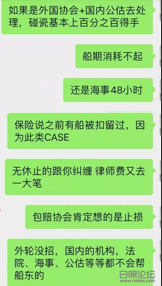 跟我两三年前一条巴拿马型靠岚山遭遇情况的改进版,设计航线避开代理给的信息所示的所有碍航物,我们的船都没看到所谓渔场的任何标示比如灯浮或者以前常见的旗子,但对方出示渔场合法执照所示位置海图无标示,所在辖区日照海事局也无任何航警公告(如批文的真的明显主管机关渎职嘛),跟VTS进港正常照会。收到索赔函,华泰代表我方保赔协会理赔,同时指派律师,指定验船师协同对方代表现场调查损坏情况,然后协商索赔款项,基本按碰瓷既定套路执行,没记错的话赔了6万多刀,律师费等砸进不少,加起来跟初始索赔金额差不多吧。一场闹剧收场所有参与者除了船东及其保赔协会,其它人都成了碰瓷团伙的协办单位。
