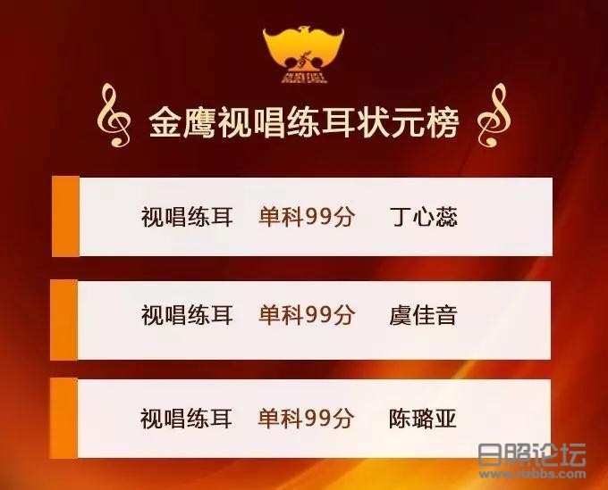 金鹰三位长期班学员(丁心蕊,陈璐亚,虞佳音)在音乐联考中取得视唱练耳单科99分状元(总分100分)。