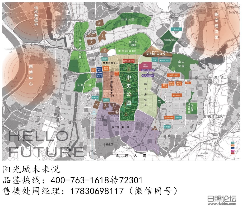 阳光城未来悦 品鉴热线:400-763-1618转72301 售楼处周经理:17830698117(微信同号) 项目介绍: 一期9号楼(认购) 面积:套内75/79㎡ 单价:2.45W 总价:180-195W ☞ 梯户比:2T6H 层高:19楼 二期12号楼(认购) 套内面积:97/107㎡ 单价:2.4-2.6W 总价:230-280W 梯户比:2T3H 层高:16楼 二期9号楼(认购) 套内面积:119㎡ 单价:2.5-2.6W 总价:300W左右 梯户比:2T2H 层高:17楼 占地156亩/总建筑面积18万方 车位比:1:1.3 容积率:1.77 ✔️ 绿化率:>50% ✔️ 装修标准:中央空调、全屋地暖、新风系统 接房时间:一期 2022.3 二期 2022.12.30 ✔️ 物业费:3.5元/㎡ 中央公园是两江新区政府着力打造的两江新区核心区+主城新中心,也是重庆唯一一个配套先行的版块。 区位价值 占地2300亩,是亚洲第一大公园,世界第 三大公园,向东10分钟车程直达江北机场,向西10分钟车程直达悦来、仙桃数据谷。这些版块也是高端项目的聚集地,而中央公园位于其中心位置。 ·开发商背景 世界500强 中国地产排名第13(龙湖第10) 17年入驻重庆 教育资源 渝北区公园北路幼儿园 渝北数据谷中学、人和街小学(接房划片) (落户一年,满足三对口) 医疗配套 渝北区人民医院,已开业; 轨道交通 9号线(在建)、10号线(已建成通车)中央公园东站(距离项目600米,步行7—8分钟)同时邻近5号线(在建)。 公园配套 步行10多分钟抵达中央公园。三面靠公园,6万方园林围合,独享中原山公园(规划中)、向阳公园(规划中)、鹿山公园(规划中)。 商业配套 由五大开发商联合打造的360万方超级商圈。其中包括新城吾悦广场、龙湖天街、中粮大悦城、合景泰富悠方以及万科智汇谷。 品鉴热线:400-763-1618转72301 售楼处周经理:17830698117(微信同号)