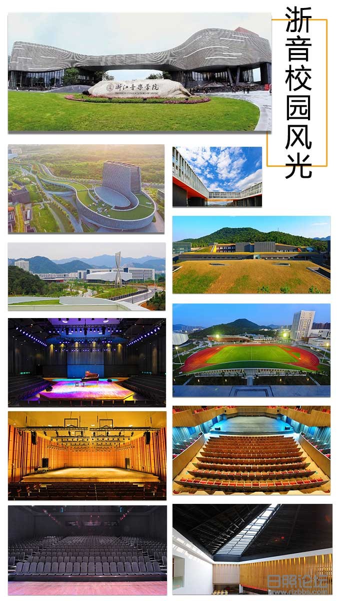 浙江音乐学院坐落于杭州市西湖区之江板块,校园环境优美,设施一流。校园占地面积602亩,校舍建筑面积36万平方米。拥有大剧院1座、音乐厅3座、剧场3个、排练厅102个、琴房906间、录音棚7间以及图书馆、数字音乐浙江省工程研究中心等教学辅助和艺术实践场馆等完善设施。设有作曲与作曲技术理论、音乐学、音乐表演、艺术与科技等4个音乐专业,师资力量雄厚,具有独立设置本科艺术院校艺术类专业单独招生资格,面向全国招生。