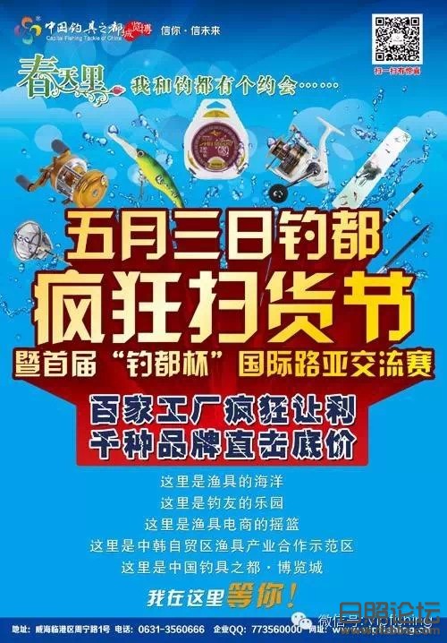 活动时间:2015年05月03号 活动地址:中国钓具之都博览城-威海市临港区周宁路一号 活动详询电话:0631-3560777/0631-3560666