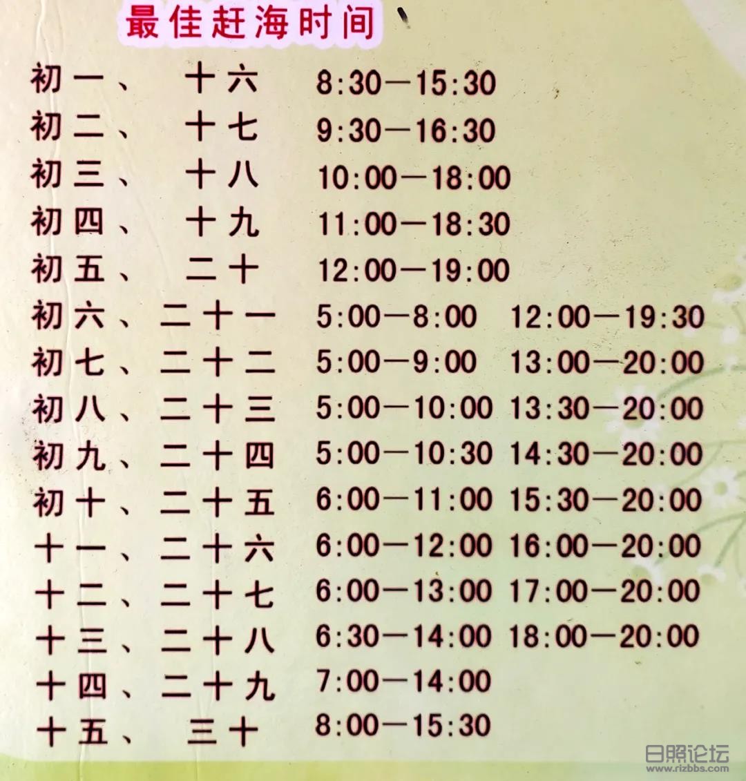 [交流] 日照海域潮汐时刻表和看日出时间表 |